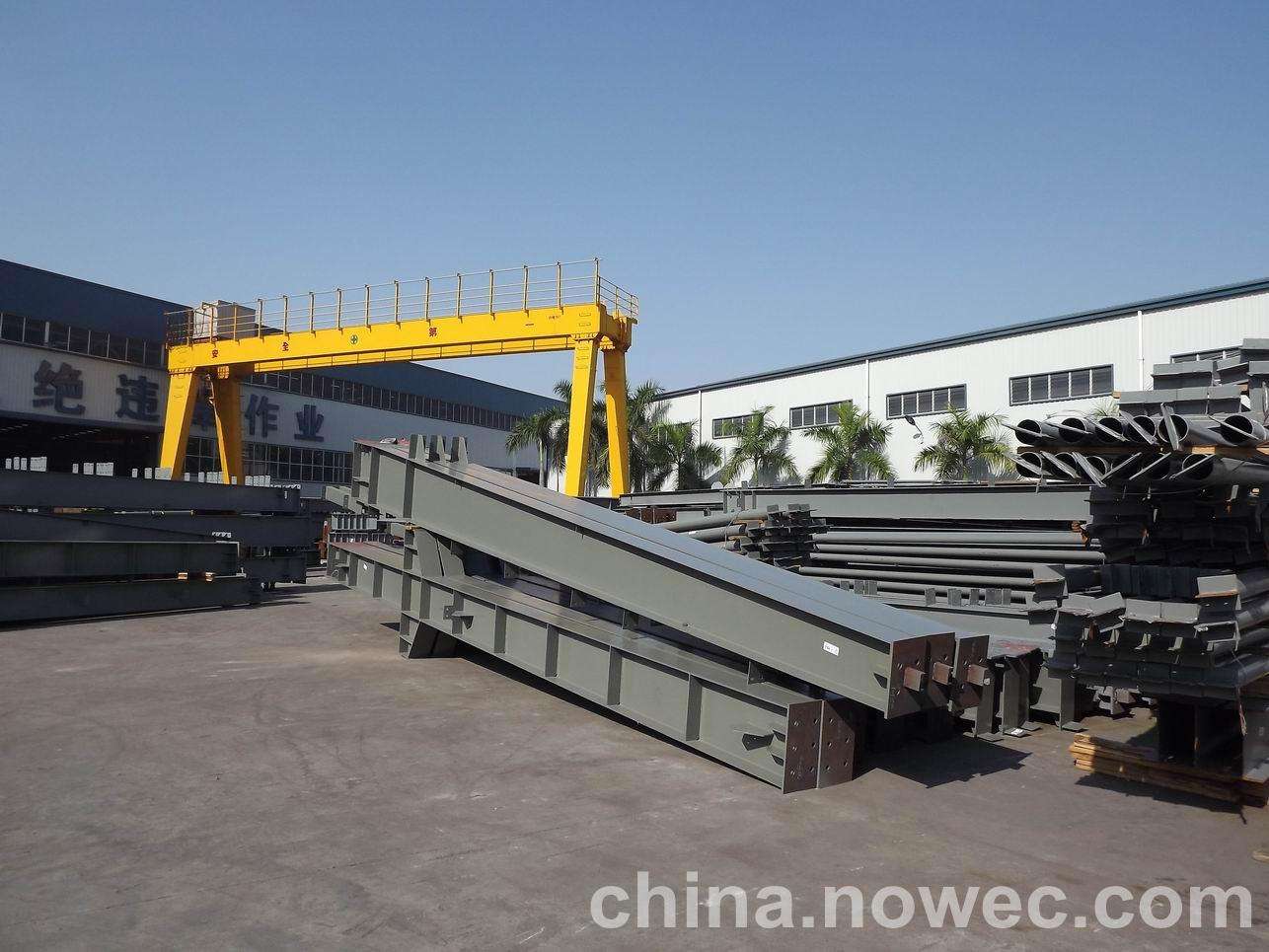 条状单元一般沿长跨方向分割,其宽度约为1~3个网格,其长度为l2或l2/2(l2为短跨跨距)。块状单元一般沿钦州网架平面纵横向分割成矩形或正方形单元。每个单元的重量以现有起重机能胜任为准。条(块)与条(块)之间可以直接拼装,也可空一网格在高空拼装。由于条(块)状单元是在地面拼装,因而高空作业量较高空散装法大为减少,拼装支架也减少很多,又能充分利用现有起重设备,故较经济。这种安装方法适用于分割后网架的钢度和受力状况改变较小的各类中小型网架,如两向正交正放四角锥、正放抽空四角锥等网架。