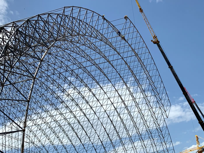 (2)网架加工前应对现场尺寸进行复测,确认无误后方可进行加工、安装;网架制作、运输、安装应遵守《空间网格结构技术规程》JGJ7-2010、《钢网架钦州螺栓球节点》JG/T 10-2009、《钢网架钦州螺栓球节点用高强度螺栓》 GB/T 16939-2016、《钢结构钦州工程钦州施工规范》 GB50755-2012、《钢结构钦州工程施工质量验收标准》 GB50205-2020。